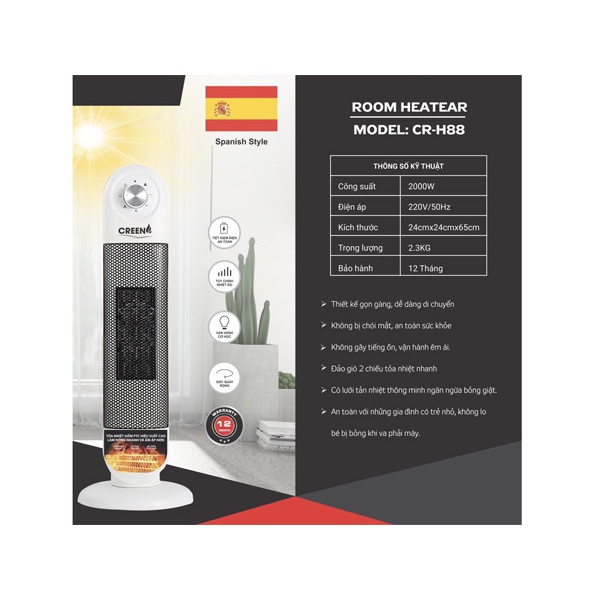 Giới thiệu Máy Sưởi Gốm Ceramic Inverter Creen CR-H88 2000W New 2021 - Hàng Chính Hãng Bảo Hành 12 Tháng