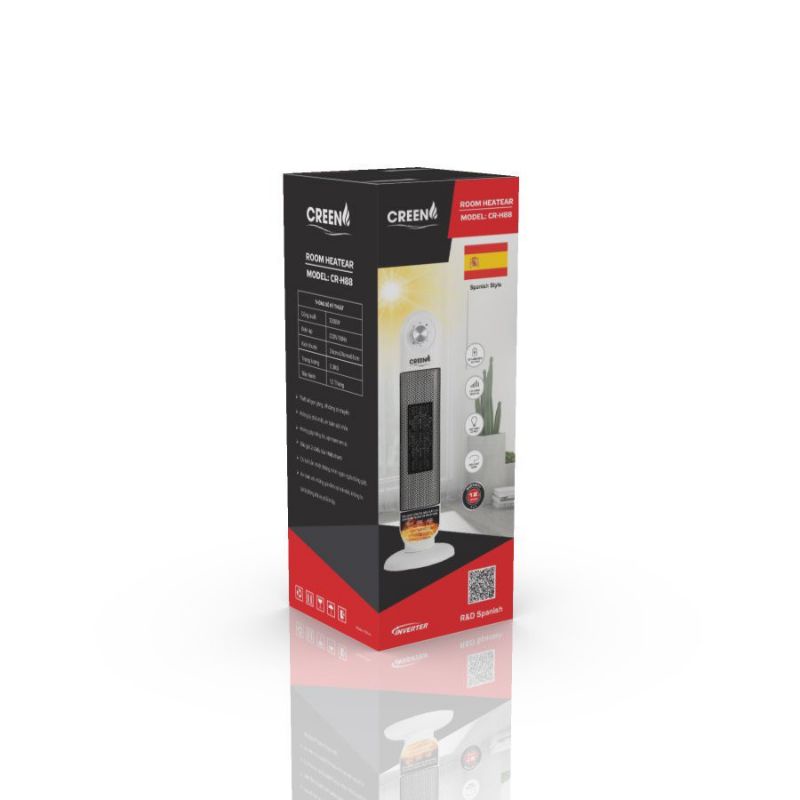 Quạt sưởi gốm Ceramic Creen, Máy sưởi gốm tiết kiệm điện, bảo hành 12 tháng, đổi trả miễn phí 7 ngày mã CR-H88Khi những cơn gió lạnh kéo về cũng là lúc báo hiệu một mùa lạnh đang đến, và đây cũng chính là lúc chúng ta phải đối mặt với những cơn lạnh cắt da cắt thịt, nó là nỗi sợ hãi với mọi người đặc biệt là người già, trẻ nhỏ. Nhưng từ nay bạn hãy yên tâm, đã có Máy sưởi đánh tan lạnh giá, đem hơi ấm tới cho gia đình của bạn. Máy sưởi được thiết kế: Làm ấm không khí nhanh. Đặc biệt Gốm phát nhiệt không tạo ra mùi khó chịu vì thế bạn hoàn toàn yên tâm không khí căn phòng bạn luôn được trong lành. Thân máy được thiết kế an toàn không có góc cạnh. Chỉ việc cắm điện và sử dụng dễ dàng. - Là sản phẩm đạt tiêu chuẩn Tây Ban Nha.