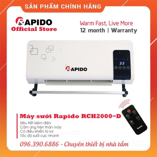 Thiết Bị Điện Gia Dụng > Thiết bị điện gia dụng lớn > Máy sưởi || Máy sưởi gốm điện tử Rapido RCH2000-D,M ( Loại có điều khiển/Công tắc )Còn hàng