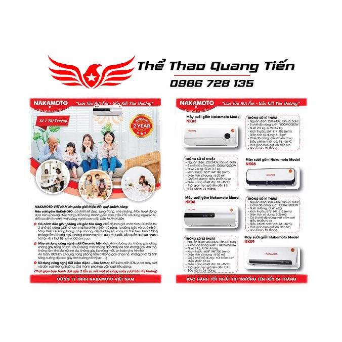 Thông tin về máy sưởi gốm Nakamoto NK06