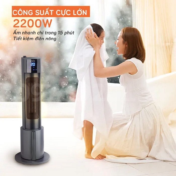 Toàn máy có công suất là 2200W- sử dụng trong 15 phút có thể giữ ấm lên đến 30 phút, đảm bảo đáp ứng nhu cầu sưởi ấm của cả gia đình trong tiết trời lạnh giá mà không tiêu tốn quá nhiều điện năng, tiết kiệm chi phí tối đa cho người dùng.