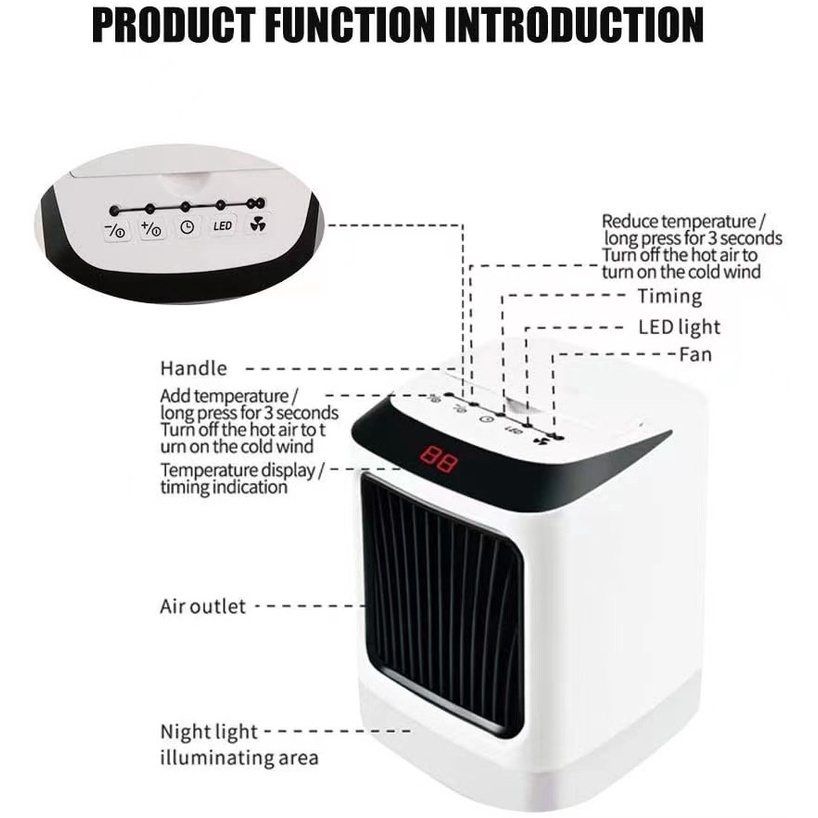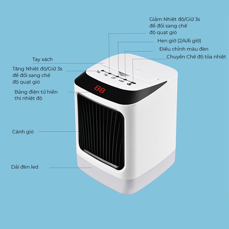 Giới thiệu Máy sưởi mini chế độ hẹn giờ thông minh, 2 chế độ sưởi, quạt sưởi ấm nhỏ gọn có quai xách tiện lợi [BẢO HÀNH 1 ĐỔI 1]