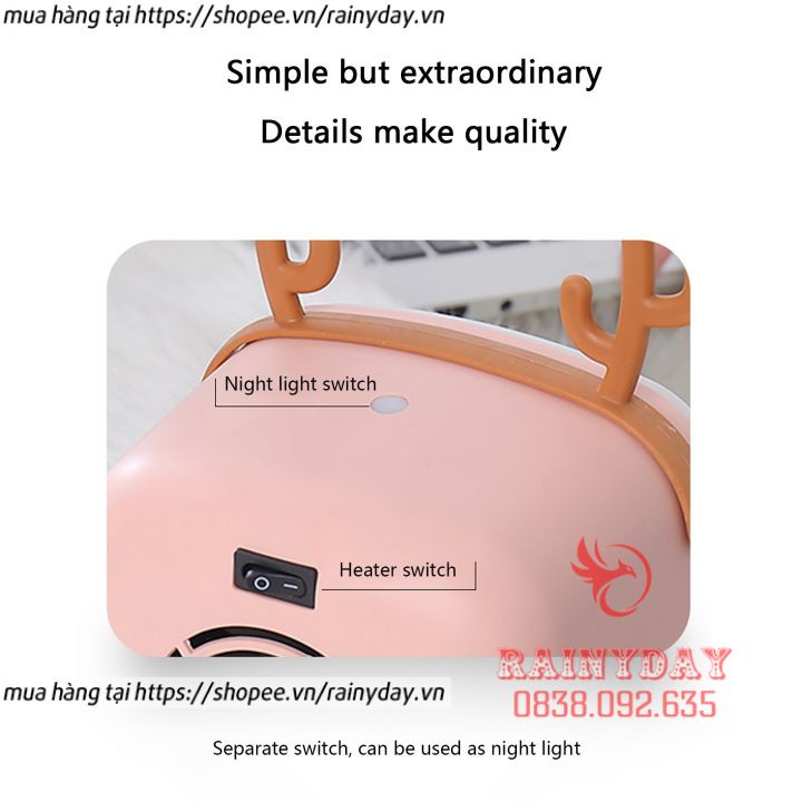 Quạt sưởi mini để bàn có đèn sưởi ấm mùa đông, máy sưởi công suất 400W cho phòng ngủ văn phòngĐặc điểm nổi bật: