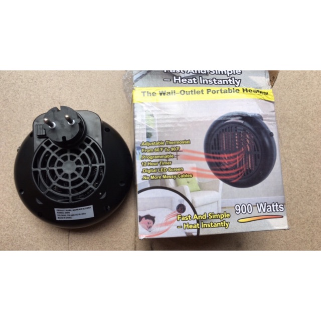 Máy sưởi mini cắm điện tiện dụng không có dây điện mà cắm trực tiếp ổ cắm dễ dàng sử dụng mọi nơiCông suất điện 900W