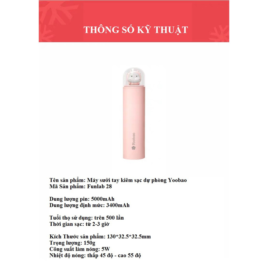 Máy sưởi tay kiêm sạc dự phòng 2in1 Yoobao 5000mAh, nhỏ gọn cute thuận tiện khi đi công tác, cầm ra đường