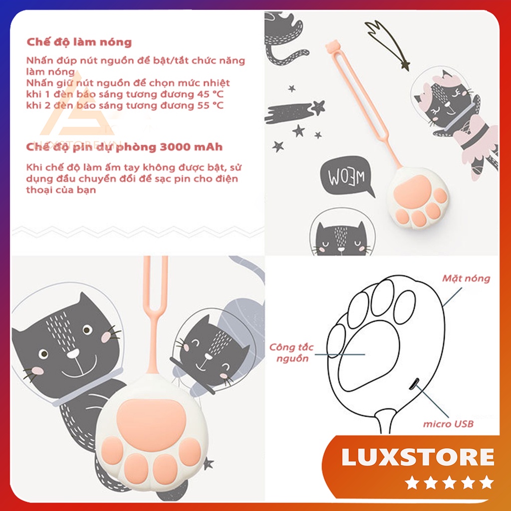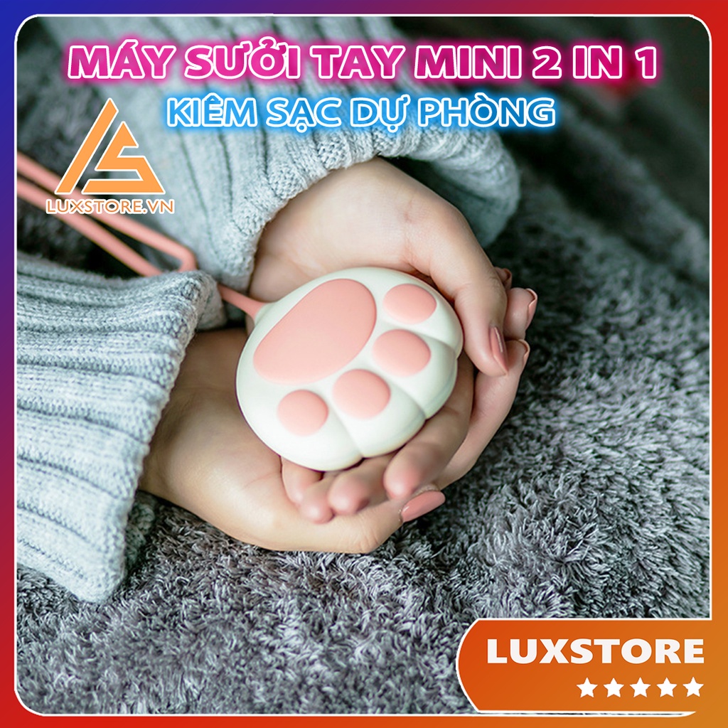 MÁY SƯỞI TAY MINI KIÊM SẠC PIN DỰ PHÒNG DUNG LƯỢNG 3000mAh, MÁY SƯỞI ẤM BÀN TAY CHẤT LIỆU CAO SU TỰ NHIÊN – LUXSTORE
