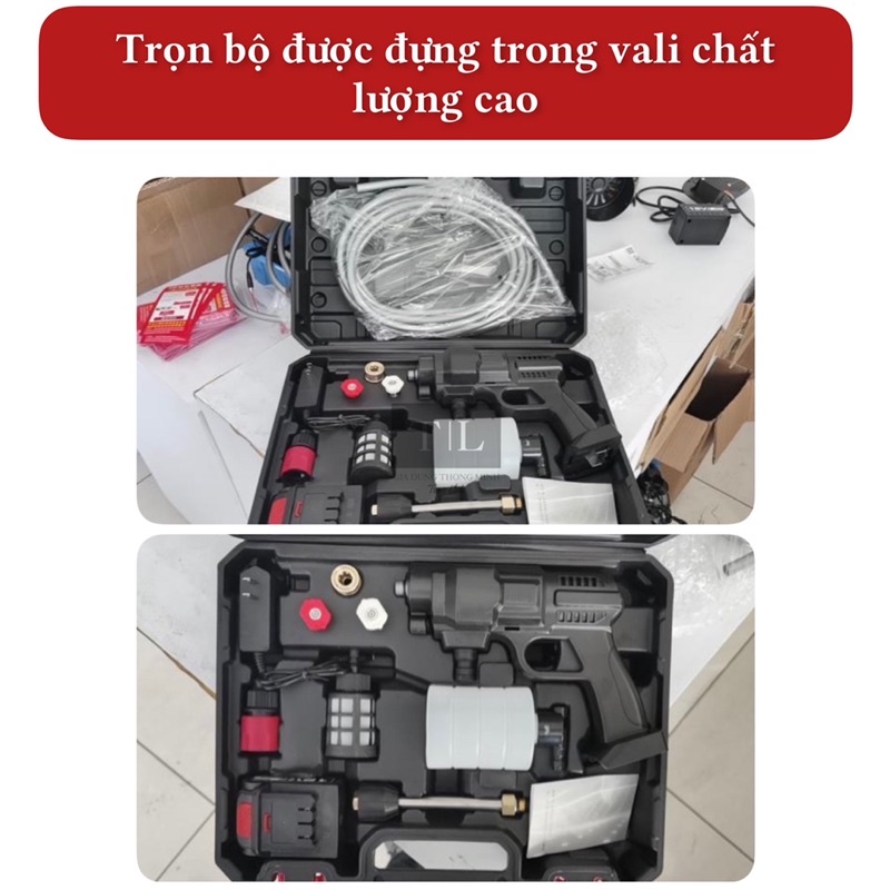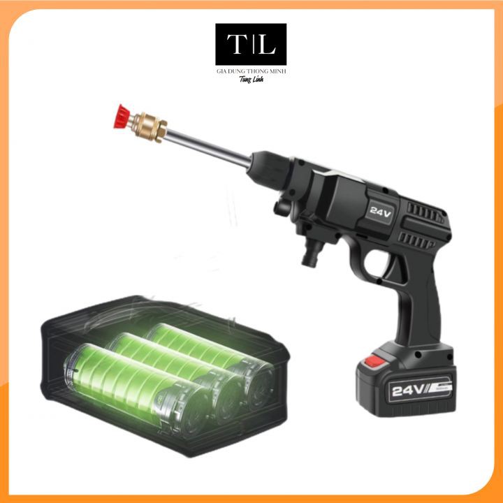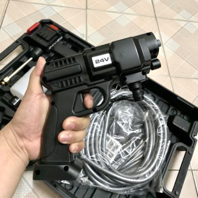 💥Trọn bộ sản phẩm: 5m dây, 1 sạc, pin 24V, thanh nối dài, 2 đầu phun