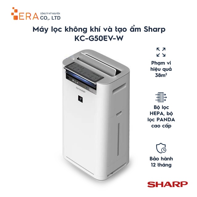Giới thiệu [Mã ELHA10 giảm 6% đơn 5TR] Máy tạo ẩm và lọc không khí Sharp KC-G50EV-W - Hàng Chính Hãng