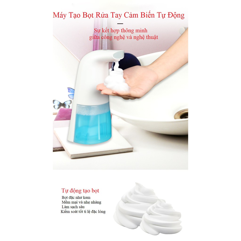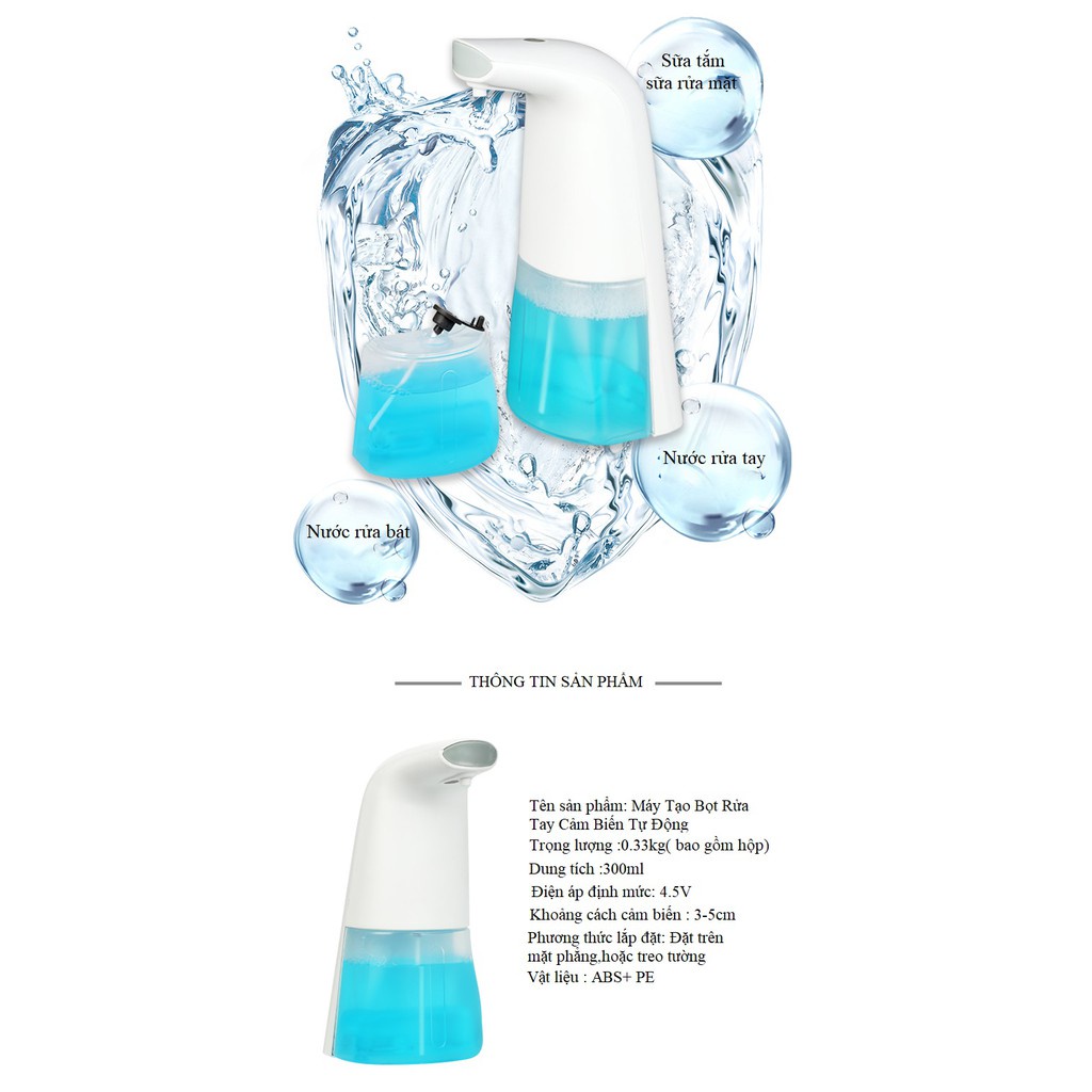 Tiết kiệm gấp 5 lần với tỉ lệ pha: 1 xà bông:5 nước.BÌNH TẠO BỌT TỰ ĐỘNG đưa tay gần khu vực miệng bình nó sẽ tự động nhả 1 lượng xà bông vừa đủ bong bóng siêu mịn,rất dễ dàng chỉ trong 0,25s với bộ phận cảm biến thông minh siêu nhạy.