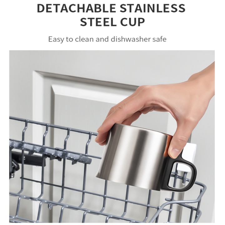 - Máy tạo bọt sữa được làm bằng inox cao cấp 304, dày dặn; siêu bền bỉ và hoàn toàn chống han gỉ. Bề mặt inox được phủ thêm lớp chống dính giúp bạn dễ dàng vệ sinh.