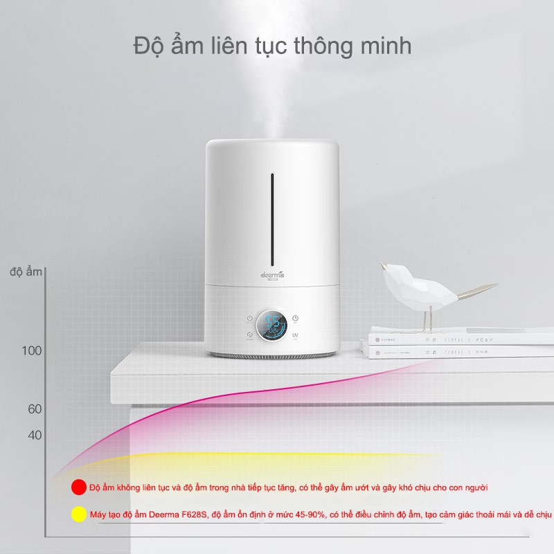 Máy tạo độ ẩm không khí Xiaomi Deerma DEM F628S F628 30m² Màn hình led thông minh Dung tích 5L khổng lồ