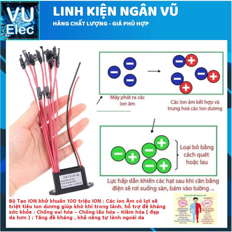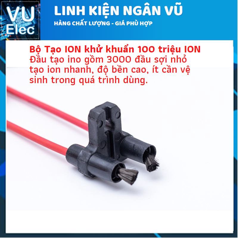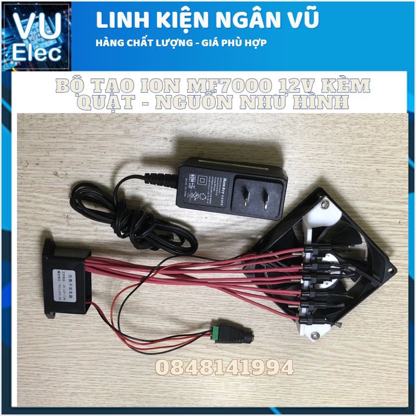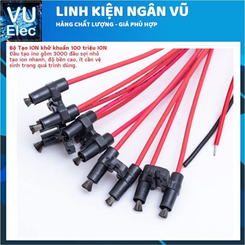 - Phân loại : Mạch 12V-Quạt-Nguồn gồm 1 Bộ tạo ion 10 đầu 12V kèm 1 Jack DC kèm Quạt 12V và khung gá 10 đầu và Nguồn adapter 12V xịn.
