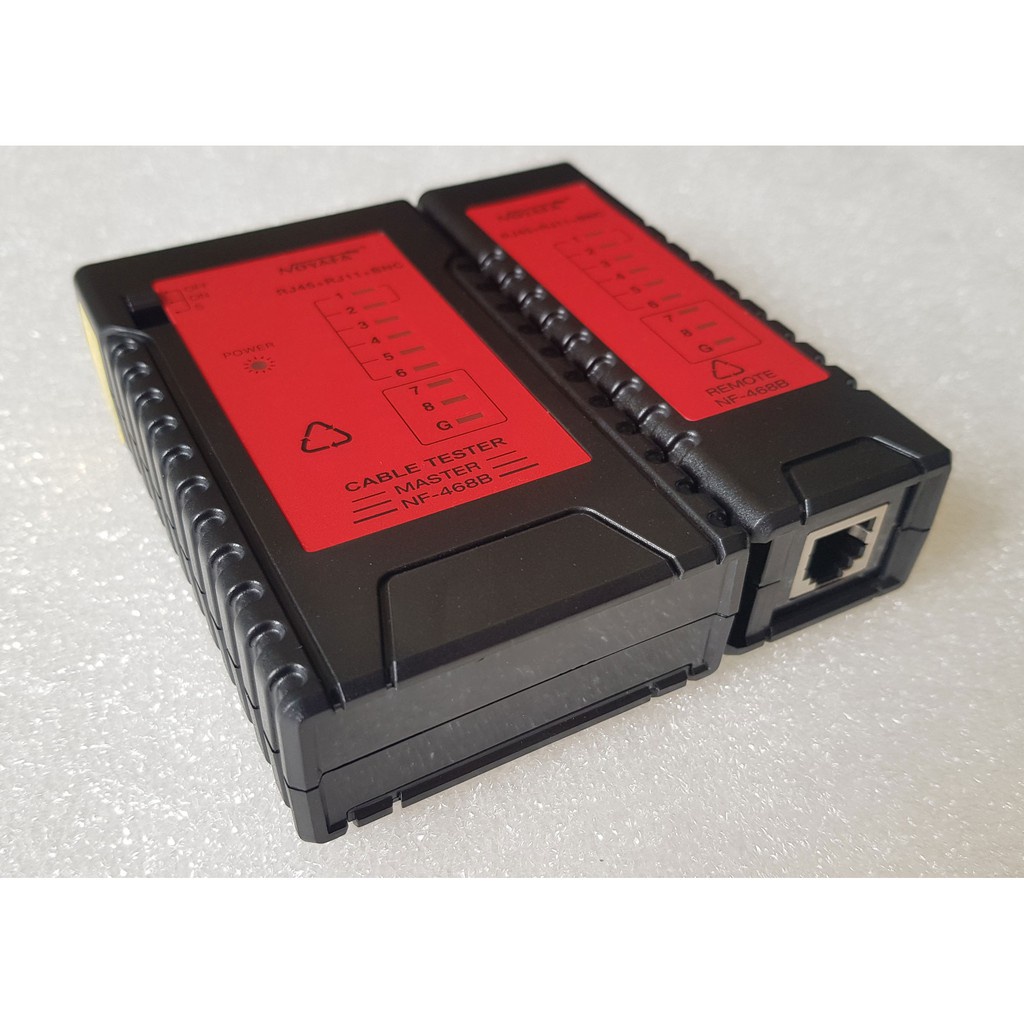 Máy test cáp mạng NF-468B Noyafa chính hãng với chức năng test cáp mạng cat5,cat6 chuẩn RJ45, cáp thoại chuẩn RJ11 và cáp đồng trục BNC cho kết quả chính xác ngay tức thì thông qua hệ thống đèn báo hiển thị trên máy