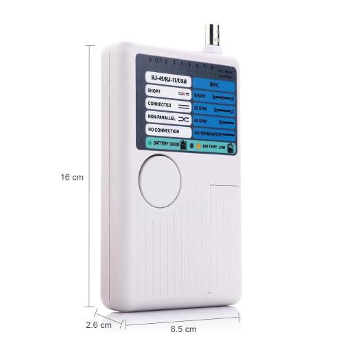 Máy kiểm tra cáp 4 trong 1 NF-3468, nó có chức năng bằng cách nhấn vào nhau trên bảng điều khiển. Người dùng có thể nhận được kết quả kiểm tra rõ ràng từ ánh sáng 8 và hiểu biết cáp được kết nối. Không có kết nối, ngắn mạch hoặc kết nối chéo