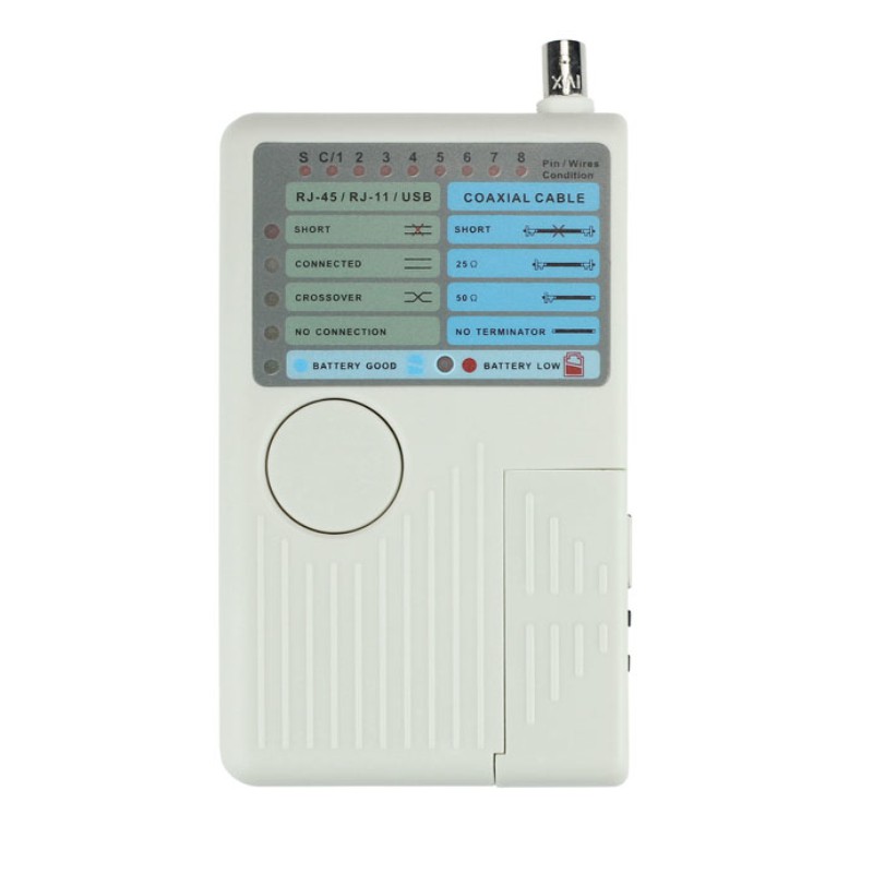Kiểm tra cài đặt dây từ xa và cáp nối với độ dài lên đến 600ft (RJ-45 / RJ-11 / BNC) 1 cách đơn giản với mỗi loại cáp truy cập thuận tiện tương ứng bằng 1 pin, Được thiết kế tương ứng với Đèn LED cho biết trạng thái kết nối và cung cấp các lỗi Beeper truyền tin âm thanh giúp cho Kỹ thuật viện dễ dàng xác định lỗi (nếu có) của các thiết bị cần kiểm tra