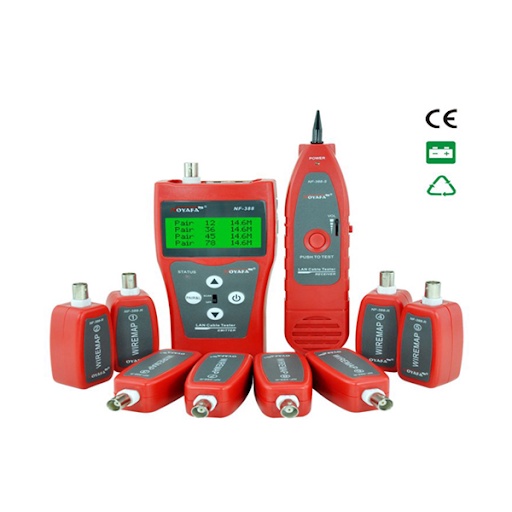 Máy test cable Mạng đa năng RJ 45, RJ 11, USB, cáp đồng trục, Model NF-388, với màn hình hiển thị LCD, đo được số mét, số feet trên chiều dài đoạn dây, xác định đựơc vị trí đứt và nhiều tính năng khác như sau:
