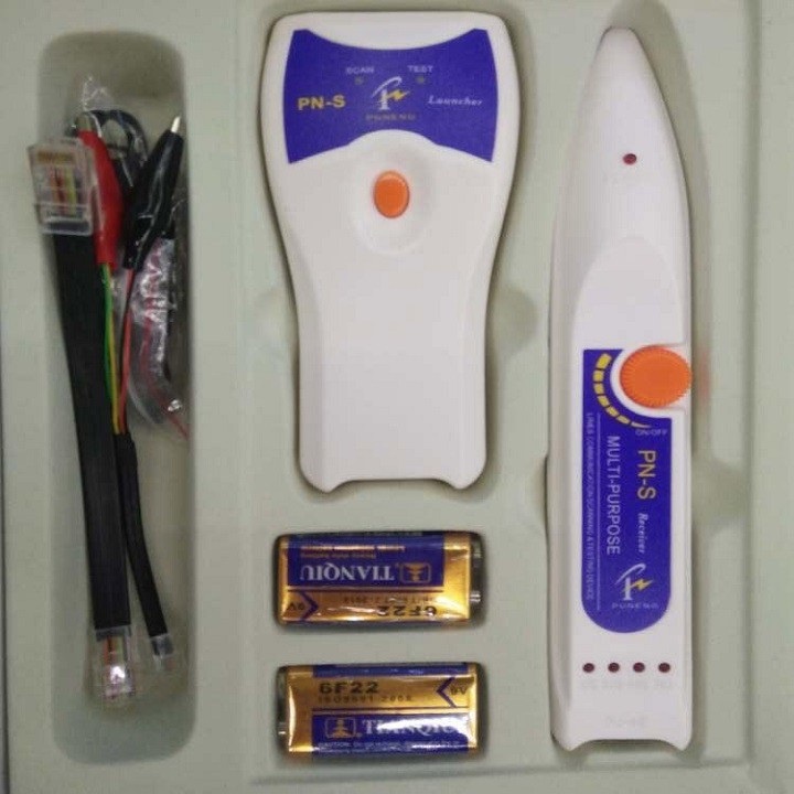 Máy test mạng, dò dây trong tường PN-S: Máy test dò dây Multi Purpost PN-S – Theo dõi cáp được thiết kế để xác định và theo dõi dây hoặc cáp trong một nhóm mà không làm hỏng cách điện . Đối với đường dây điện thoại, nó có thể xác định một số trạng thái trong dòng , và thuận tiện hơn trong việc lắp đặt , gỡ lỗi, duy trì đường dây điện thoại. Thiết bị có 1 bộ gửi và một bộ nhận trong việc giúp thuận tiện cho việc thoe dõi kiểm tra xác định dây.Các tính năng: