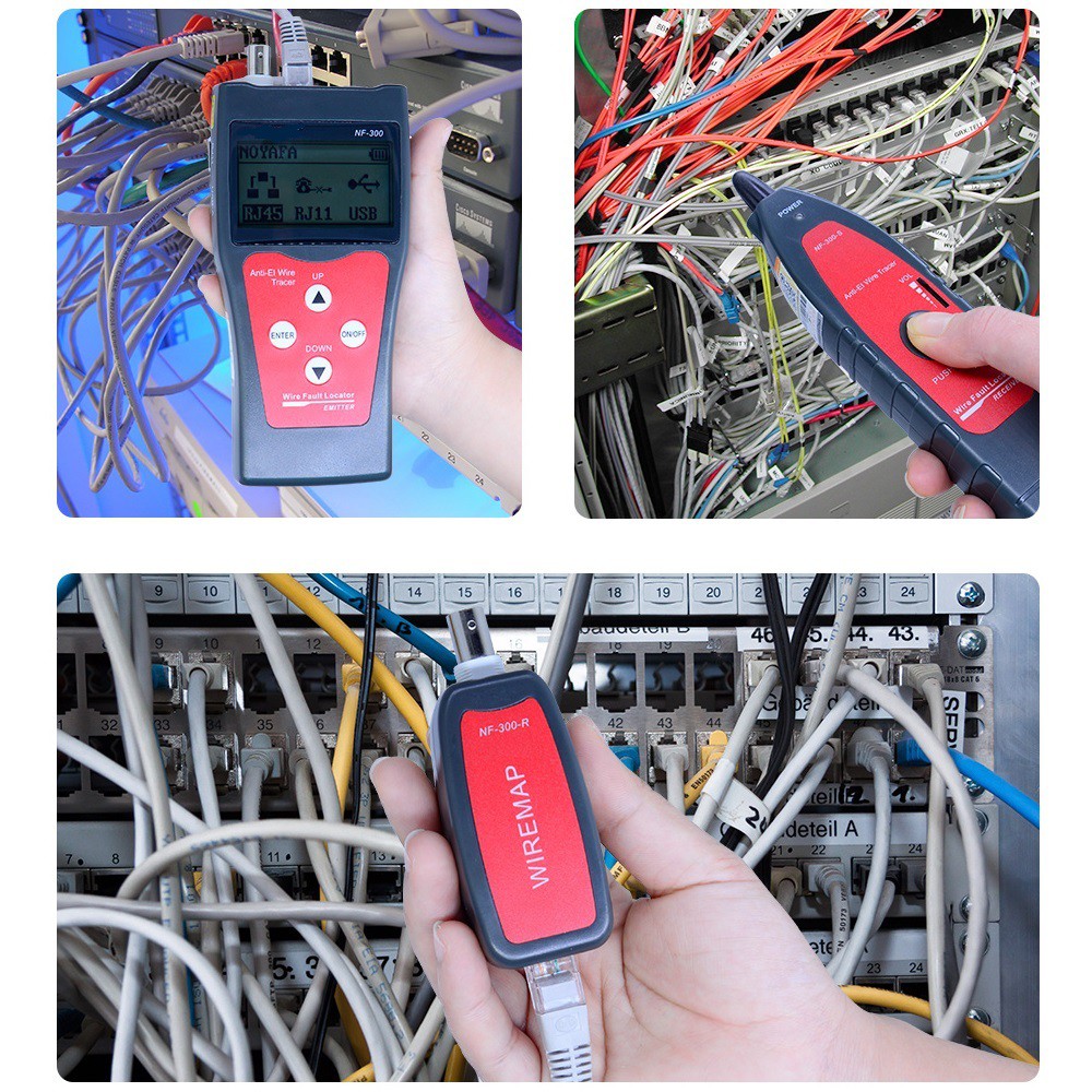 Ngoài các tính năng đo test cáp mạng cáp điện thoại, đo độ dài cáp mạng 04 đôi thì máy test mạng noyafa NF-300 chính hãng còn đo được độ dài cáp đồng trục , dây điện , truy tìm điểm đứt cáp mạng , cáp đồng trục ,tìm dò dây điện , dây mạng âm tường , rất thuận tiện trong sửa chữa hệ thống mạng cũ .