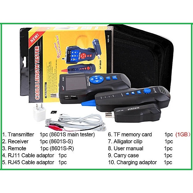 NF-8601S là sản phẩm NÂNG CẤP dựa trênNF-8601A, cung cấp thử nghiệm đầy đủ trên các loại mạng RJ45 (cat5e/cat6/cat6A/Cat7)khác nhau, hoặc cáp điện thoại RJ11(Cat3)