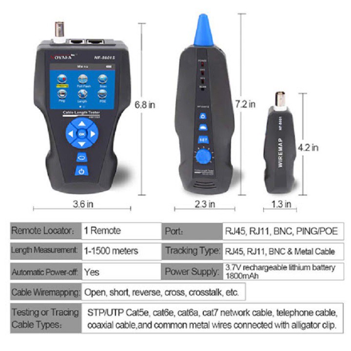 Giới thiệu [Mã 55ELSALE2 giảm 5% đơn 3TR] Máy test mạng Noyafa NF-8601S Test RJ45, RJ11, BNC