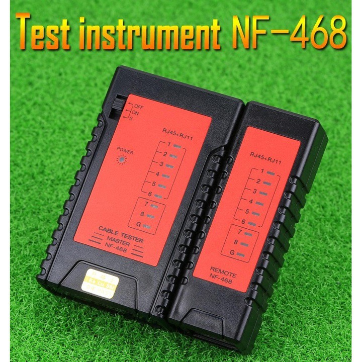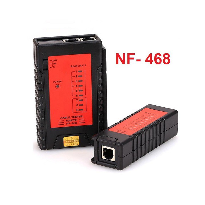 Máy test cáp mạng NF-468 Noyafa với chức năng test cáp mạng cat5,cat6 chuẩn RJ45 và cáp thoại chuẩn RJ11 cho kết quả chính xác ngay tức thì thông qua hệ thống đèn báo hiển thị trên máyHộp test mạng Noyafa NF-468 với thiết kế nhỏ gọn, chắc chắn, phù hợp với người sử dụng