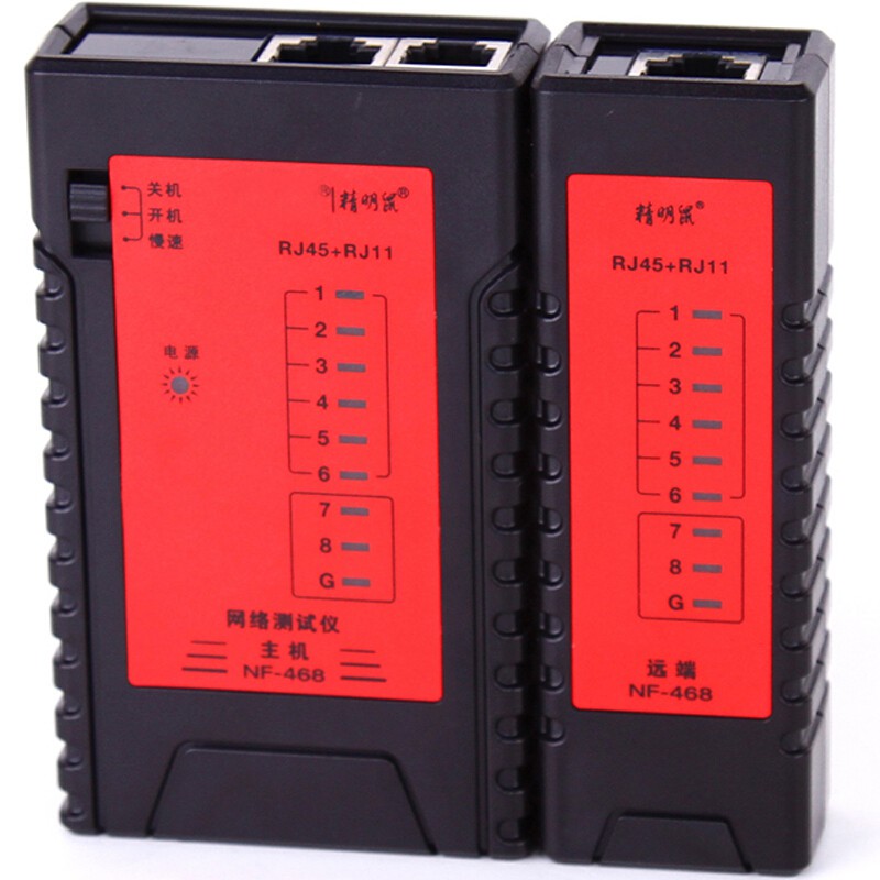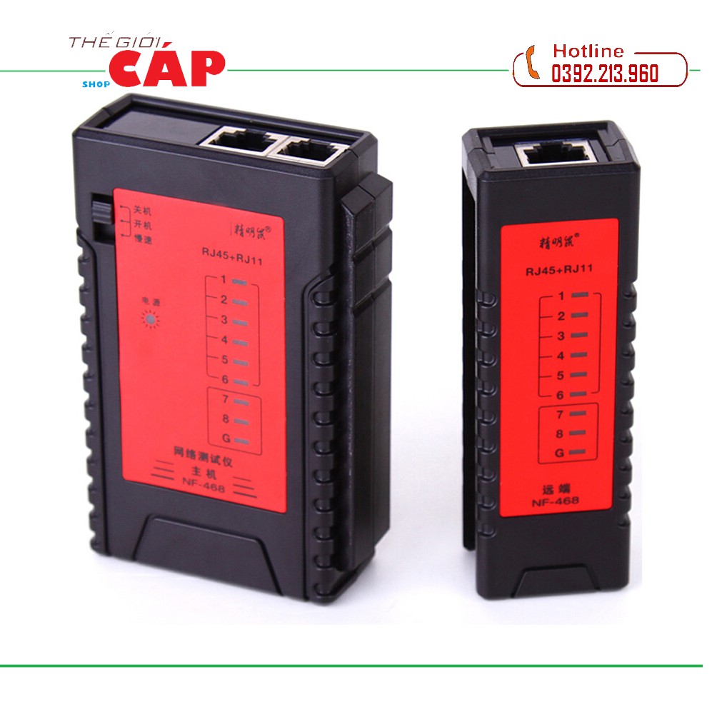 Thông tin chi tiết máy kiểm tra mạng NF-468Máy test cáp mạng với chức năng test cáp mạng cat5,cat6 chuẩn RJ45 và cáp thoại chuẩn RJ11 cho kết quả chính xác ngay tức thì thông qua hệ thống đèn báo hiển thị trên máy
