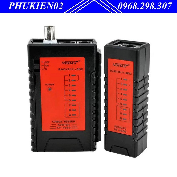 Máy test cáp mạng NF-468B Noyafa chính hãng với chức năng test cáp mạng cat5,cat6 chuẩn RJ45, cáp thoại chuẩn RJ11 và cáp đồng trục BNC cho kết quả chính xác ngay tức thì thông qua hệ thống đèn báo hiển thị trên máy