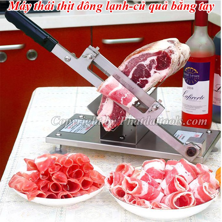 Máy thái thịt đông lạnh-củ quả dùng tayMáy thái thịt đông lạnh-củ quả dùng tay là sản phẩm tuyệt hỗ trợ đắc lực trong việc thái thịt bò, thịt lợn, thịt cừu, thịt dê, thịt bê, thịt trâu... đông lạnh.Ngoài ra máy còn có thể thái được các thực phẩm khác như cà rốt,cà chua,dưa chuột,khoai tây,lạp xưởng,thịt hun khói...