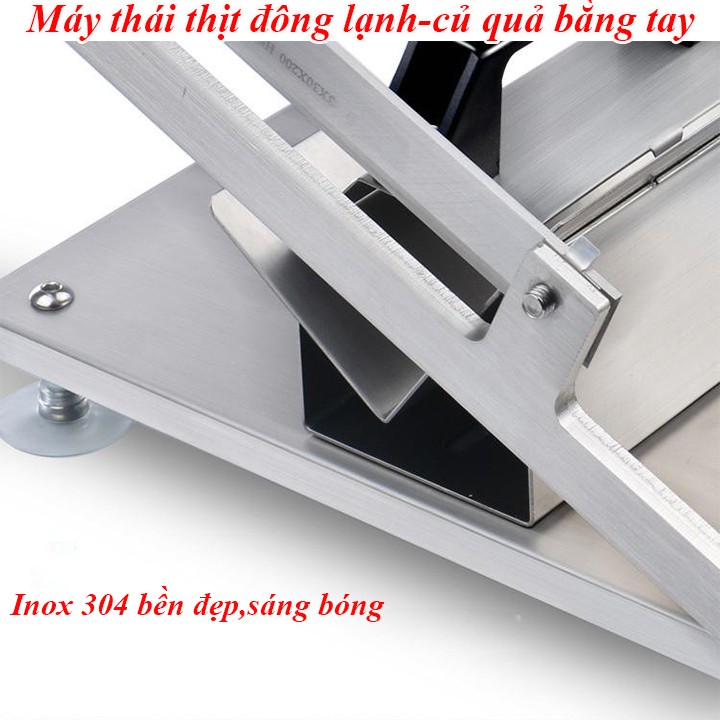 Máy thái thịt đông lạnh-củ quả dùng tay được làm bằng chất liệu inox 304 sáng bóng,thiết kế nhỏ gọn,thẩm mỹ đẹp,dễ dàng vệ sinh sau khi sử dụng.