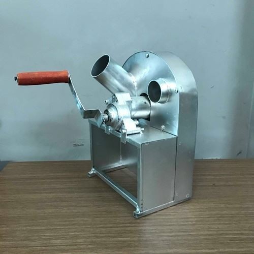 - Để máy vào rổ to hay mâm để khi thái hành không bị văng ra ngoài. Lắp tay quay vào máy quay đều tay cho từng nắm rau củ cần thái vào ống máng cho kiên tục để tại độ nén.