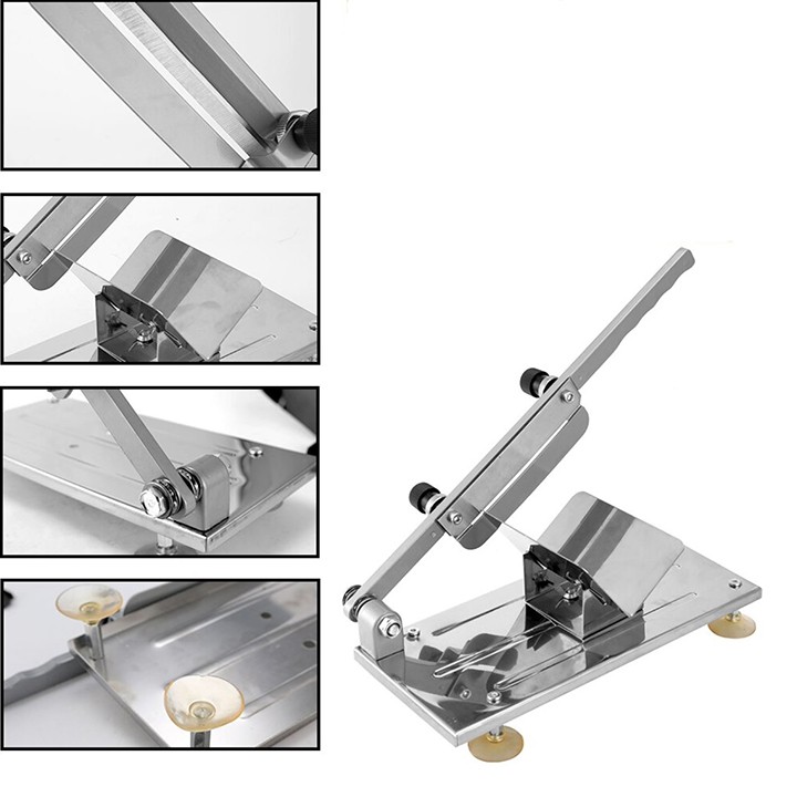 + Máy cắt thịt bằng tay được chế tạo bằng vật liệu inox cao cấp. Máy chuyên dùng thái thịt bò, thịt lợn, thịt cừu, thịt dê, thịt bê, thịt trâu... đông đá.