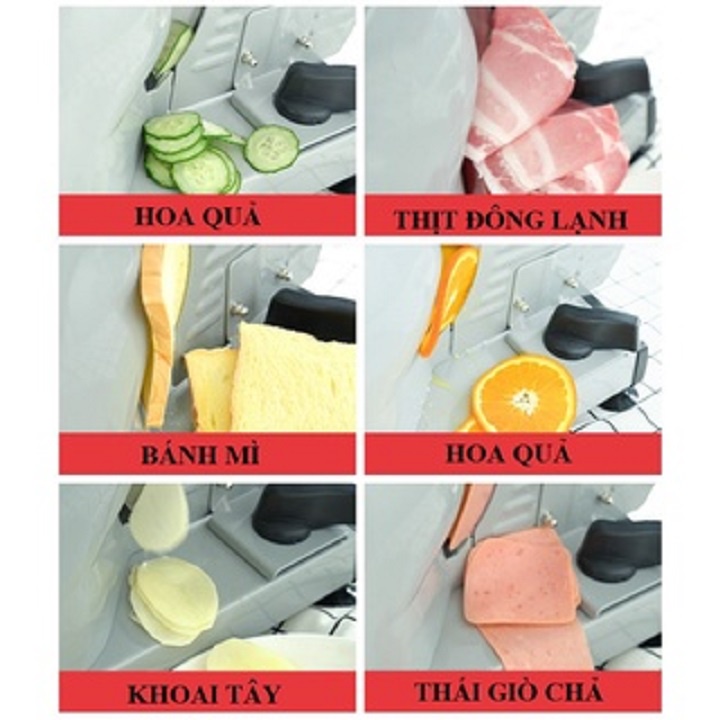 ❖ Thái được nhiều nguyên liệu: thịt đông lạnh, thịt chín, củ quả, bánh mỳ, pho mát, giò chả...thực phẩm có hình dạng cố định.