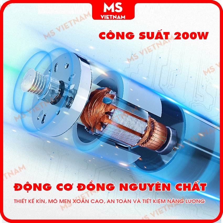 ❖ Motor 200w lõi đồng: bền bỉ, ít sinh nhiệt, hiệu quả vượt trội và tiết kiệm điện.