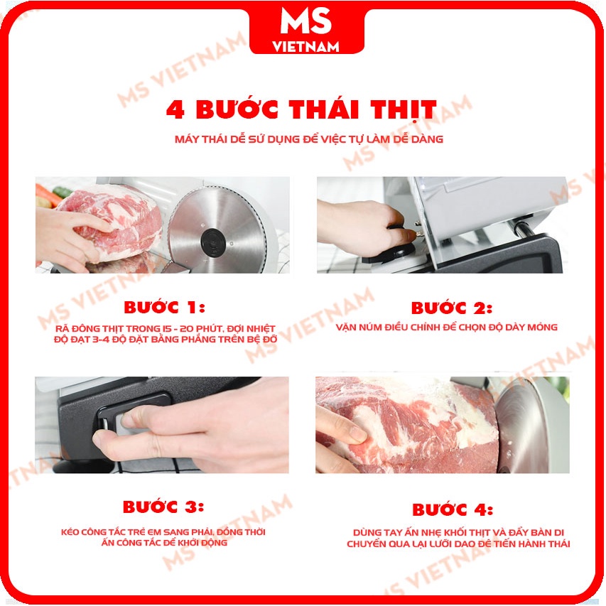 Giới thiệu Máy Thái Thịt Đông Lạnh Chính Hãng Chigo - Thái Thịt Chín, Củ Quả, Bánh Mỳ, Giò Chả - Motor Lõi Đồng 200W - MS Vietnam