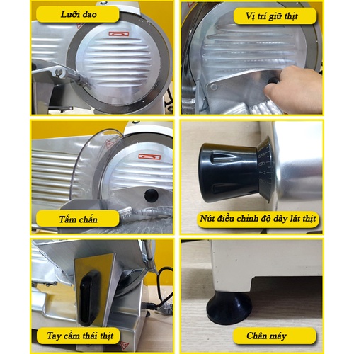 - Thiết kế tay cầm giữ thịt, để giúp thịt không bị rơi trong quá trình thái