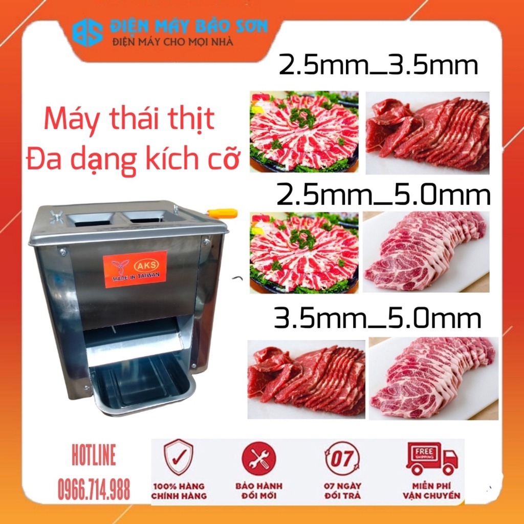 Thiết Bị Điện Gia Dụng > Đồ gia dụng nhà bếp > Máy chế biến thực phẩm & Xay thịt || Máy Thái Thịt Tươi Sống 2 Cửa Dao AKS-85 Công Suất 850w 180kg/giờ Thiết Inox Bền Đẹp Thái Đa Dạng Kích Cỡ Bảo Hành 1 NămCòn hàng