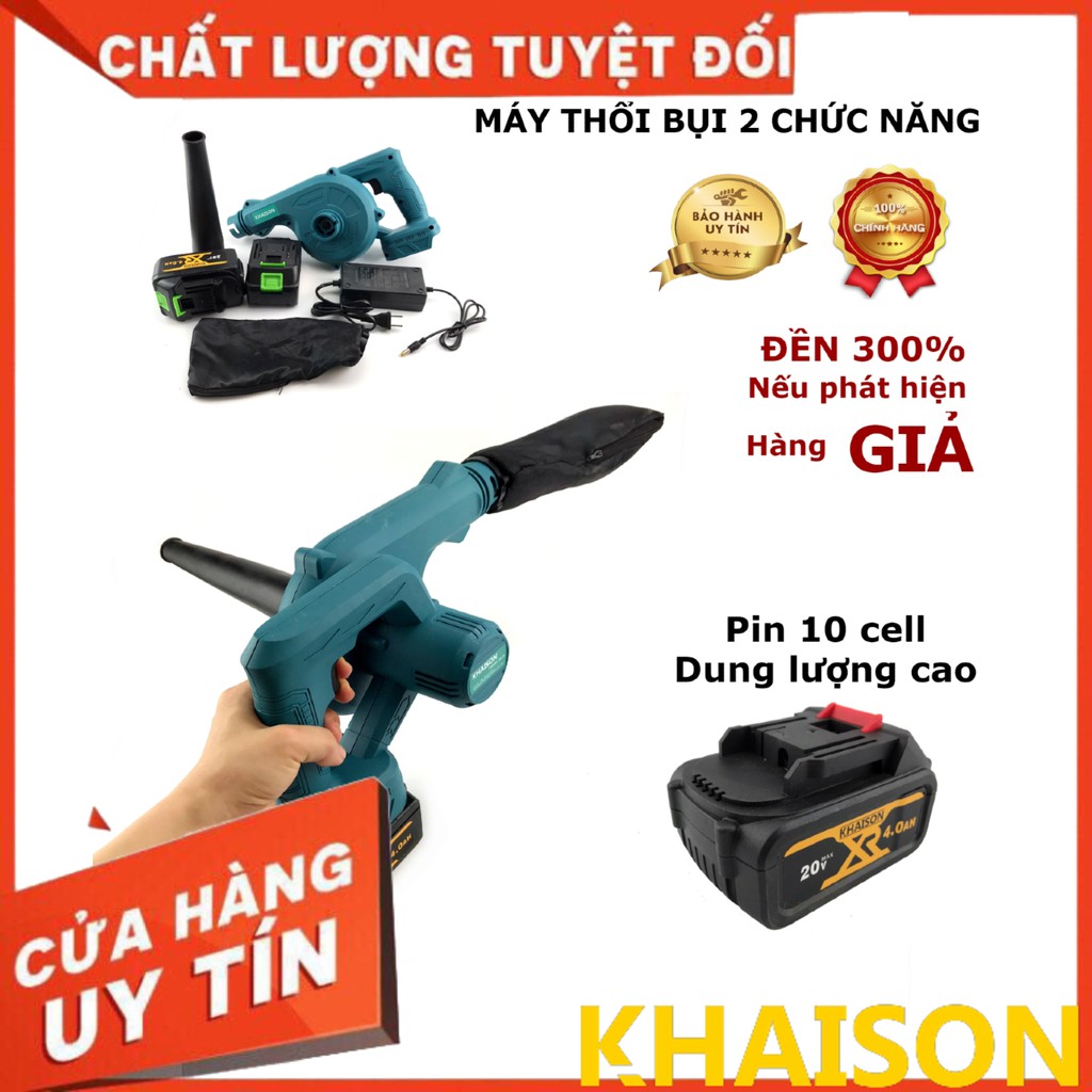Máy thổi bụi hút bụi dùng pin 20v Khaison bộ 2 pin kèm sạc