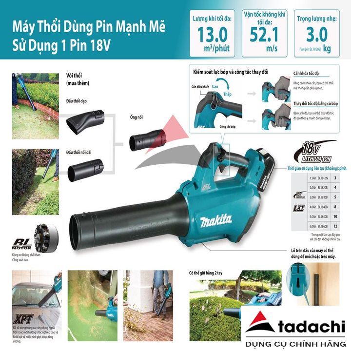Giới thiệu Máy thổi dùng pin 18V Makita DUB184Z (không pin sạc) | Tadachi