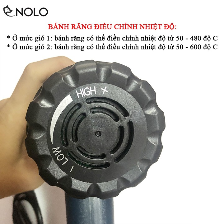Máy có thể điều chỉnh dải nhiệt từ 50°C - 600°C qua bánh răng điều chỉnh nhiệt ở phía sau thân máy.