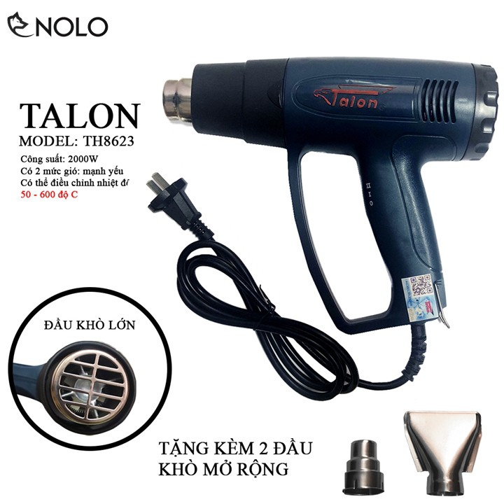 Máy Thổi Hơi Nóng Máy Khò Nhiệt Talon TH8623 Công Suất 2000W Điều Chỉnh Nhiệt Độ Từ 50 Đến 600 Độ Có 2 Mức Gió
