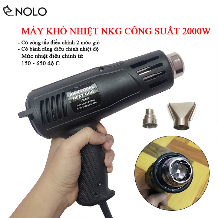 Máy Thổi Hơi Nóng Máy Khò Nhiệt NKG Công Suất 2000W Điều Chỉnh Được Nhiệt Độ Từ 150 Đến 650 Độ Có 2 Mức Gió