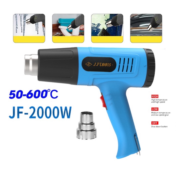 - Máy khò JFTOOIS 2000W là loại máy rất hữu ích trong công việc như hoà tan vật liệu, kết dính chúng lại với nhau hay loại bỏ những vật liệu khi chúng không còn tác dụng nữa.
