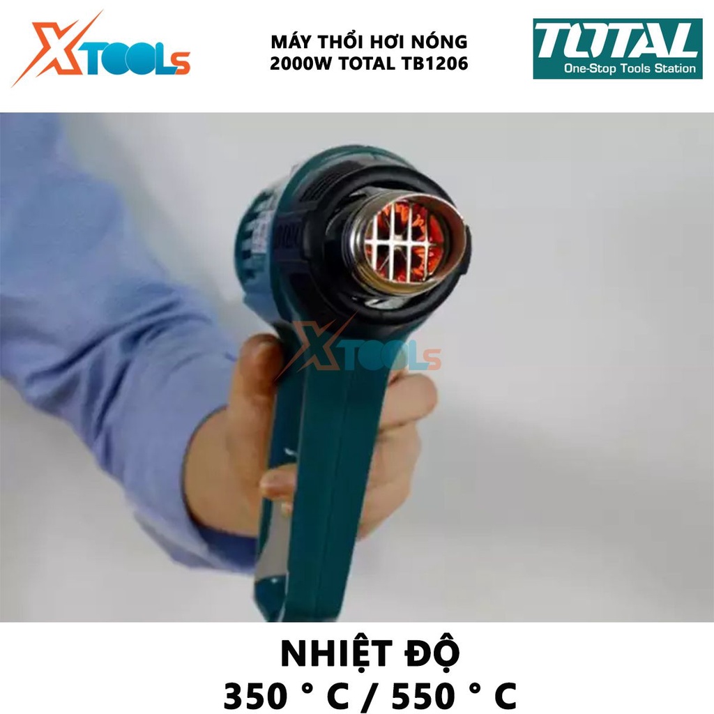 Giới thiệu Máy thổi hơi nóng Total TB1206 Máy khò nhiệt cầm tay công suất 2000W Nhiệt độ350 ° C / 550 ° C Luồng khí: 300/500 L/phút