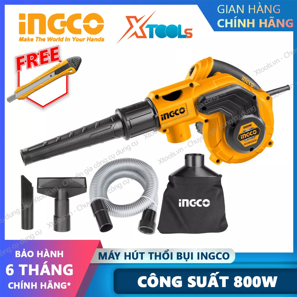 Nhà cửa & Đời sống > Dụng cụ & Thiết bị tiện ích > Dụng cụ > Máy thổi || Máy thổi hút bụi INGCO AB8008 công suất 800W tặng kèm túi chứa bụi, ống và 2 vòi hút bụi. Máy thổi/hút bụi cầm tayCòn hàng