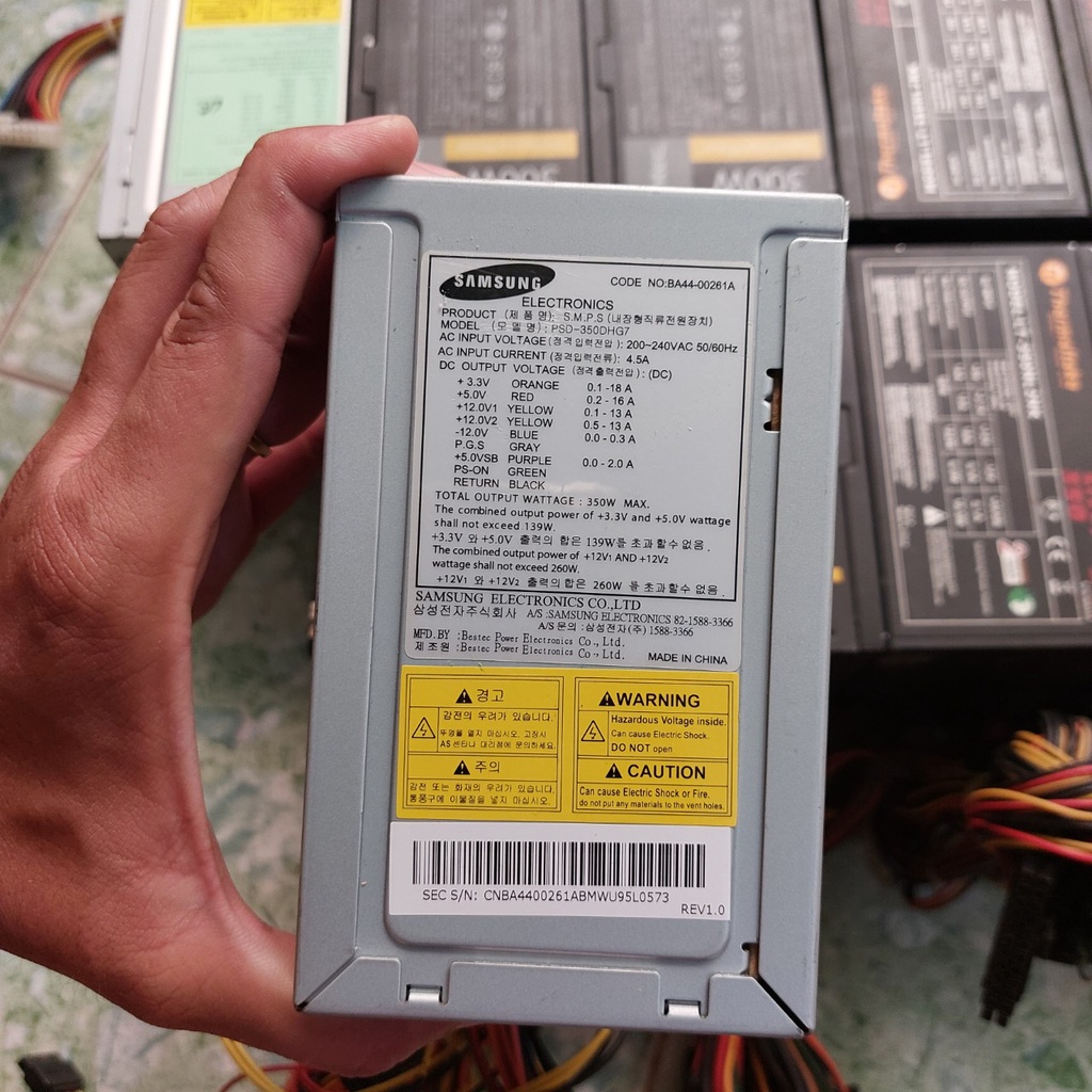 - Nguồn samsung 350W 24pin + 4 pin với 1 dây nguồn phụ 6 pin cho VGA