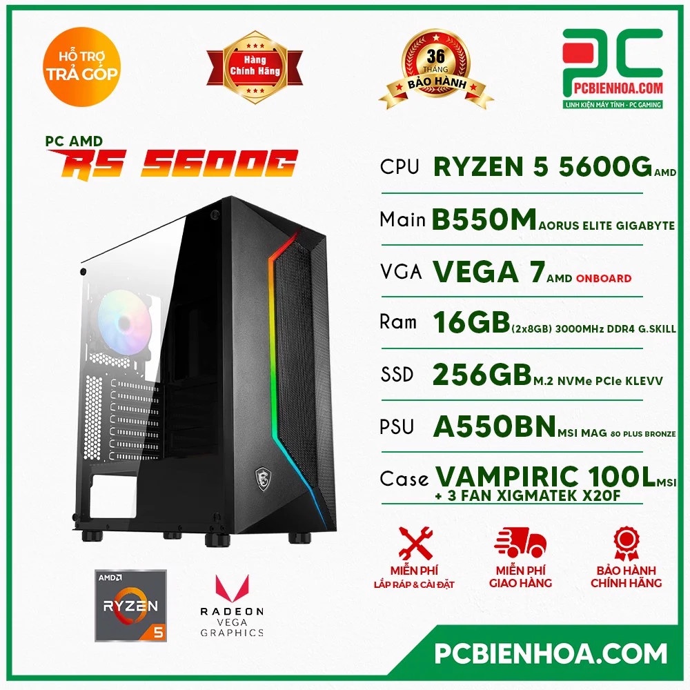 Máy tính AMD 5600G B450M 16G 256G chính hãng