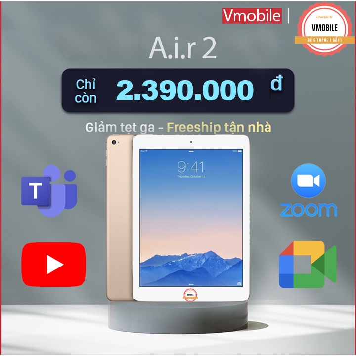 Máy Tính Bảng Air 2 Màn 9.7 Rentina nét chạy full app học tập hiện nay tặng cáp sạc bao da bảo hành 6 tháng 1 đổi 1