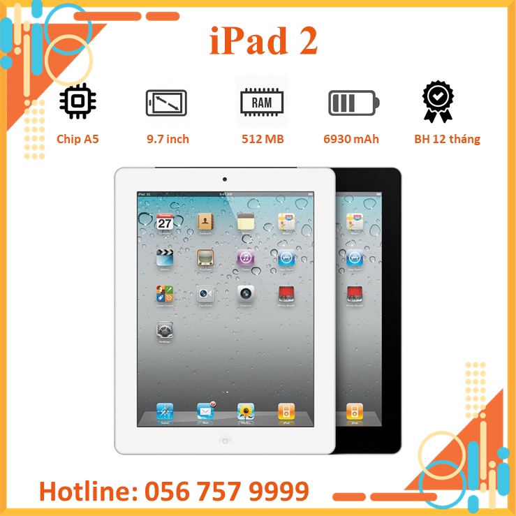 Điện Thoại & Phụ Kiện > Máy tính bảng || Máy Tính Bảng iPad 2. Bản wifi/ wifi + 3G. Bộ Nhớ 16GB, Màn Hình retina 9.7". Tặng Phụ Kiện Khi Mua MáyCòn hàng