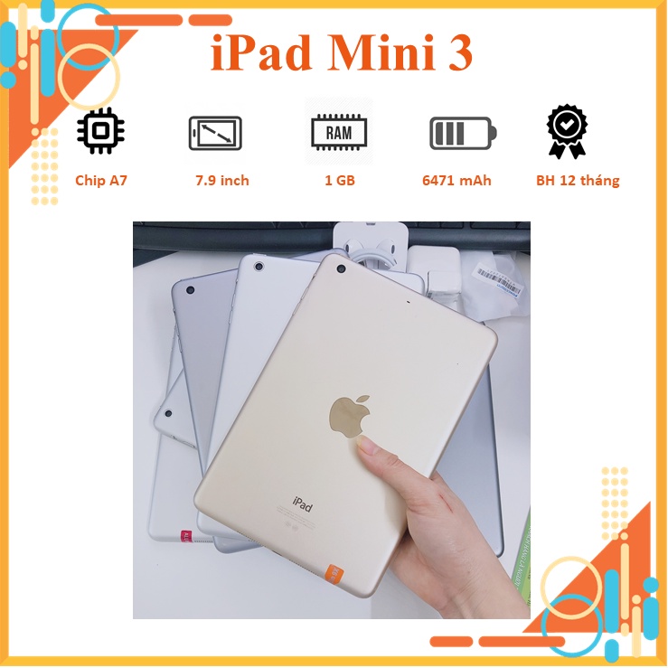MÁY TÍNH BẢNG PAD MINI 3 CHÍNH HÃNG. MÀN HÌNH 7.9", RAM 1GB. TẢI FULL ỨNG DỤNG