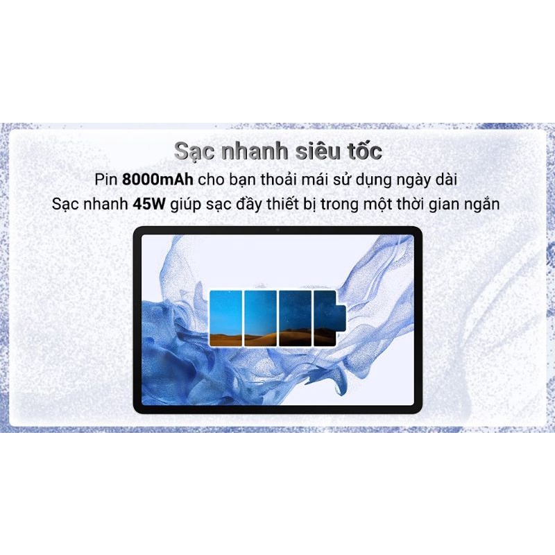 Ngoài việc được trang bị một con chip khủng, màn hình có tần số quét cao Samsung đã trang bị trên chiếc máy tính bảng thế hệ mới viên pin có dung lượng lên đến 8000 mAh, cùng với đó là công nghệ sạc nhanh 45 W.